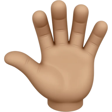 Brown hand, palm facing up, fingers loosely spread and slightly curled, thumb extended left, questioning “what?” gesture. Emoji style, white background. emoji