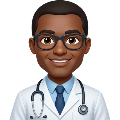 brown skin man doctor with short haris wear glasse emoji