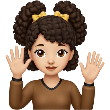 Brown Poodle with ponytail black hair girl say goodbye emoji