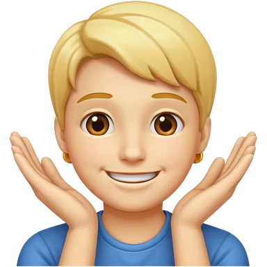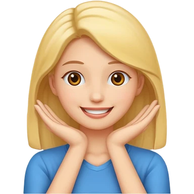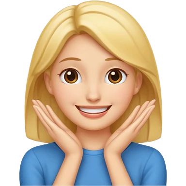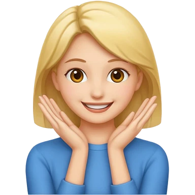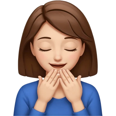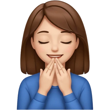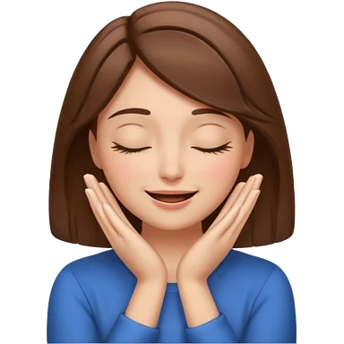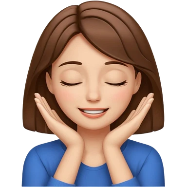 femenine smiling face posing with hands under chin, eyes closed like enjoying and brown hair emoji
