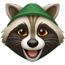 brown raccoon with orange eyes and a dark green hood that is smiling emoji | AI Emoji Generator