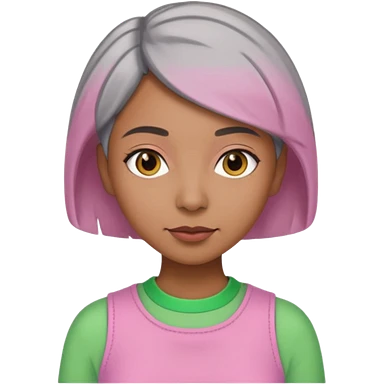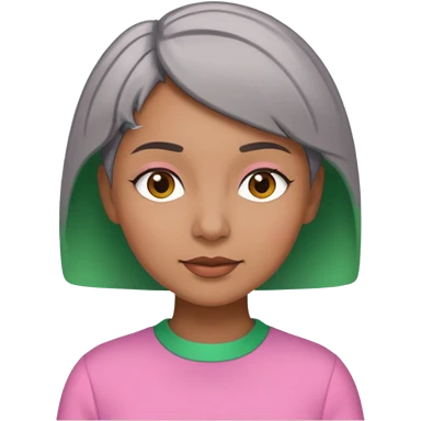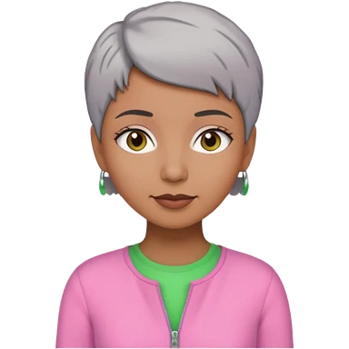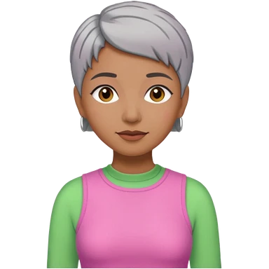 Brown woman with short gray hair wearing pink and green outfit emoji