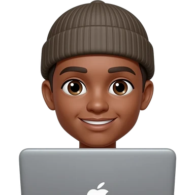 Short hair brown skin person with short beanie and laptop emoji