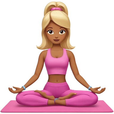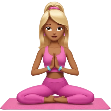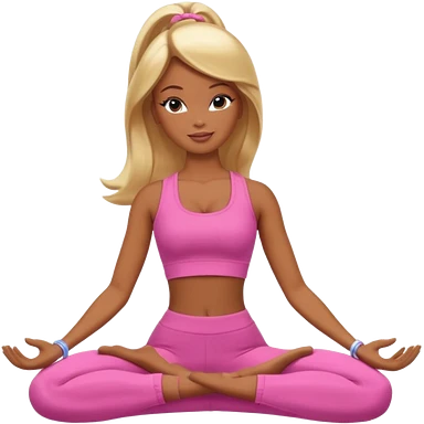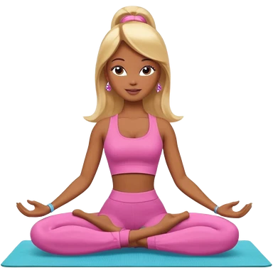 Brown skin blonde hair Barbie doing yoga with belly button pierced emoji | AI Emoji Generator