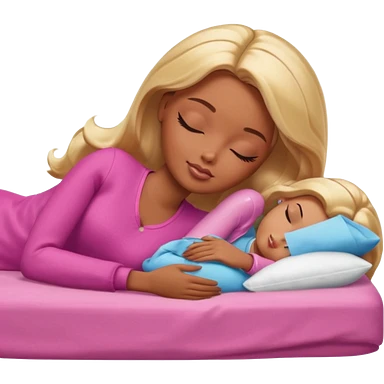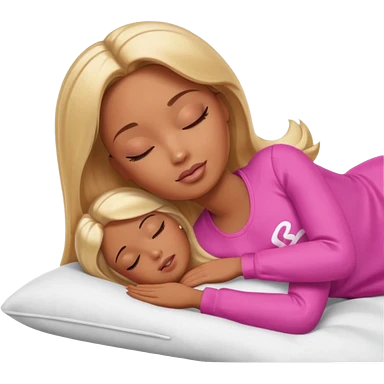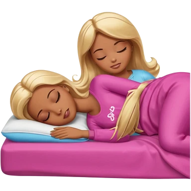 Brown skin blonde hair Barbie sleeping in bed emoji