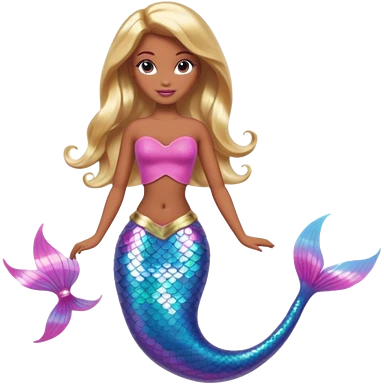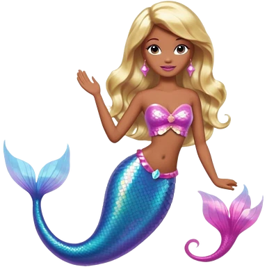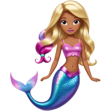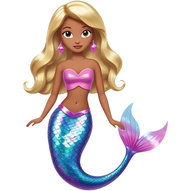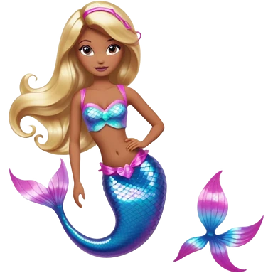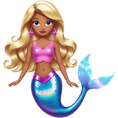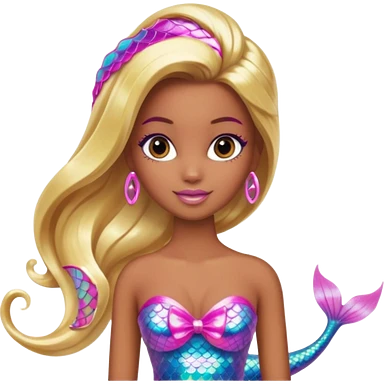 Brown skin blonde hair barbie mermaid with holographic tail and pink in hair emoji