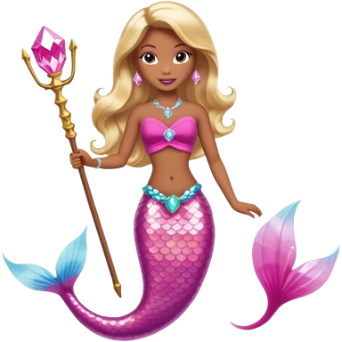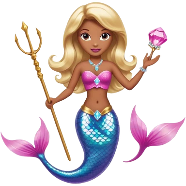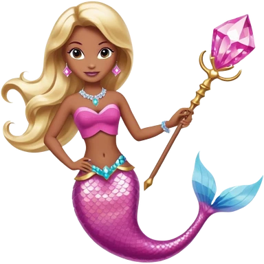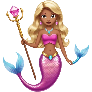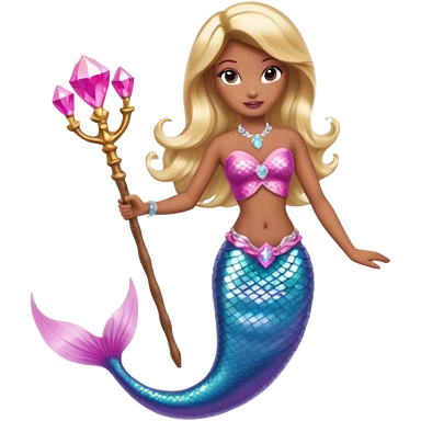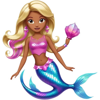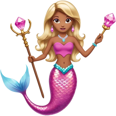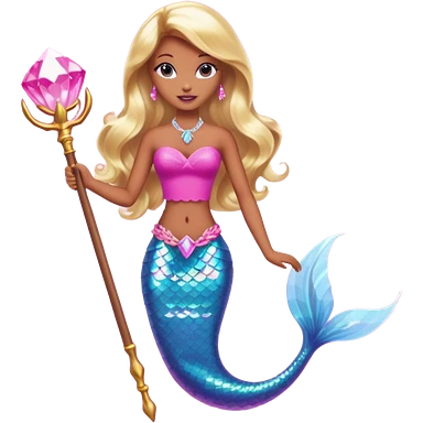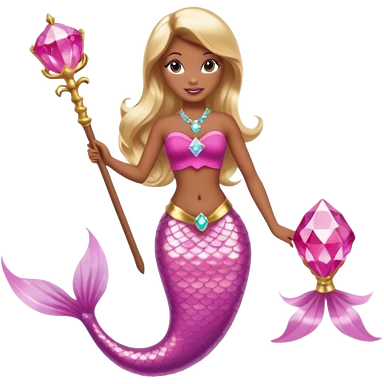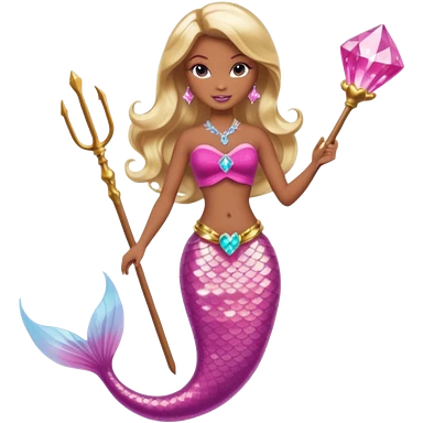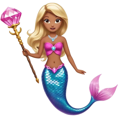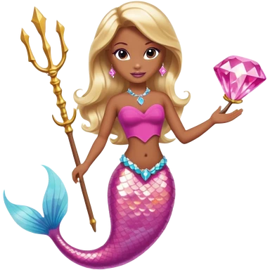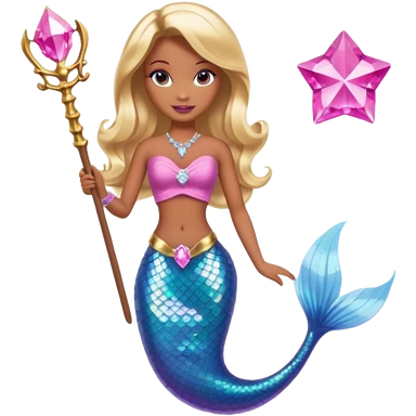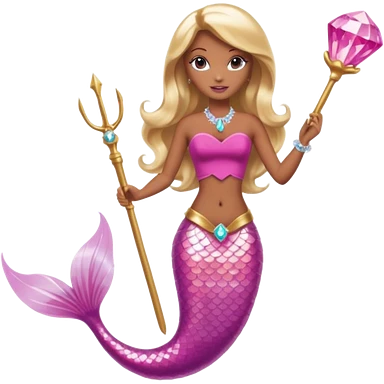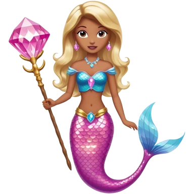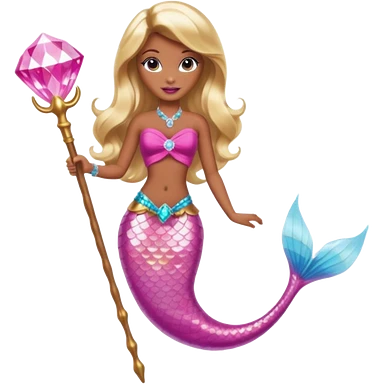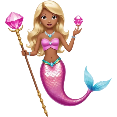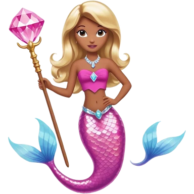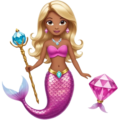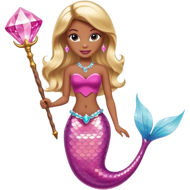 Brown skin blonde hair barbie mermaid with pink diamond tail and wand emoji