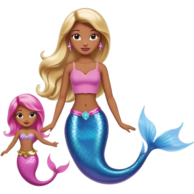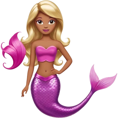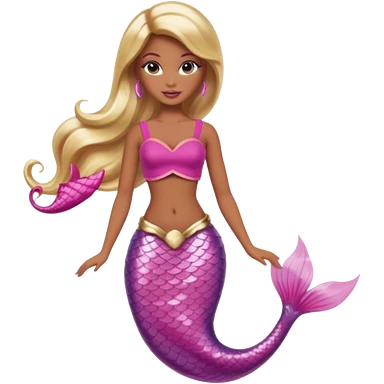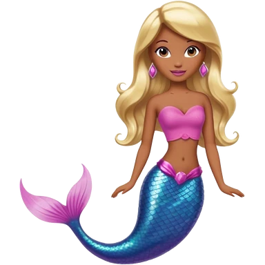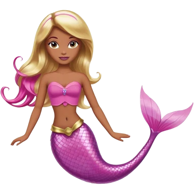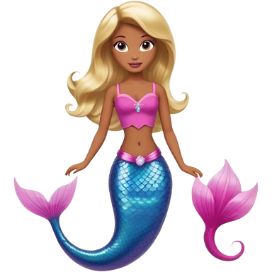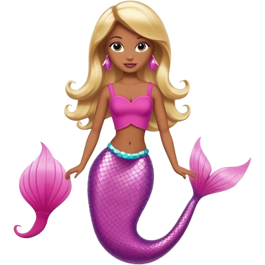 Brown skin blonde hair barbie mermaid with pink tail emoji