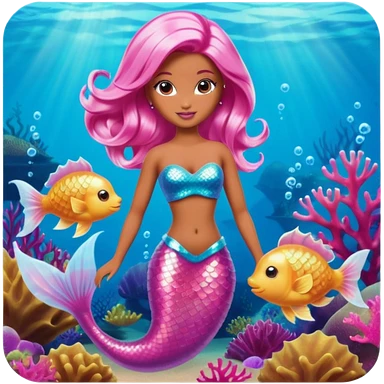 Brown skin blonde hair barbie mermaid with pink tail and pink highlights in hair emoji