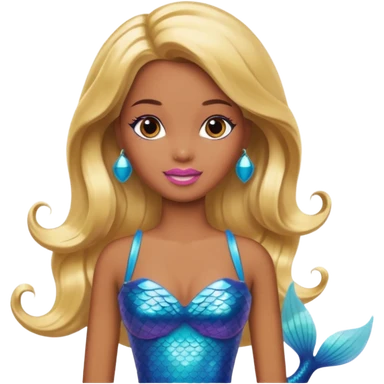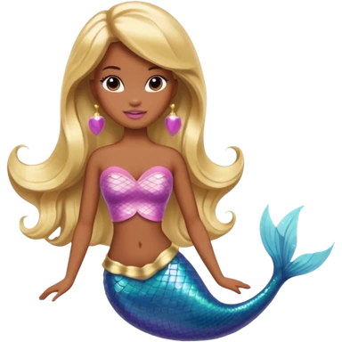 Brown skin blonde hair barbie mermaid with pink diamond tail and wand emoji | AI Emoji Generator