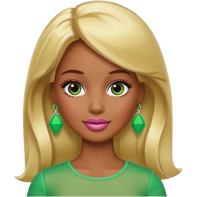 Brown skin blonde hair barbie with her boyfriend with black short hair and green eyes with tattoos emoji