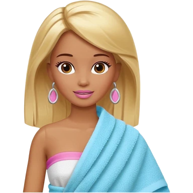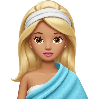 Brown skin blonde hair Barbie with face wash on and hair in towel emoji