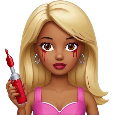 Brown skin blonde hair barbie with black gun emoji | AI Emoji Generator
