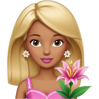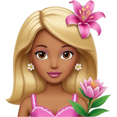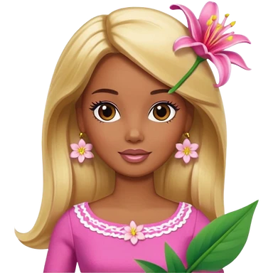Brown skin blonde hair Barbie with Lilly in hair emoji | AI Emoji Generator