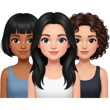 3 sisters one with short hair tan skin one with long black hair white skin and one with dark brown curly hair with white skin tone emoji