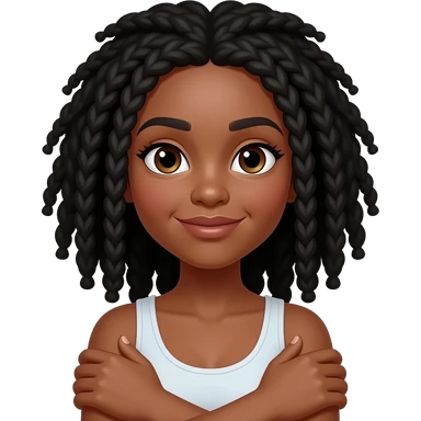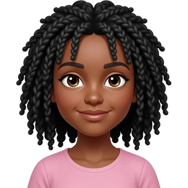 Girl with brown skin and black locs. Brown eyes and a cute smile emoji