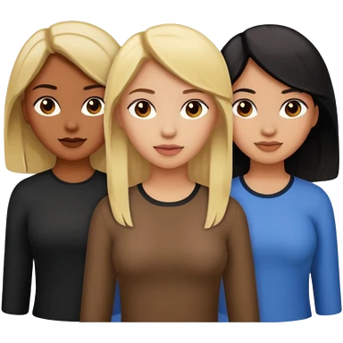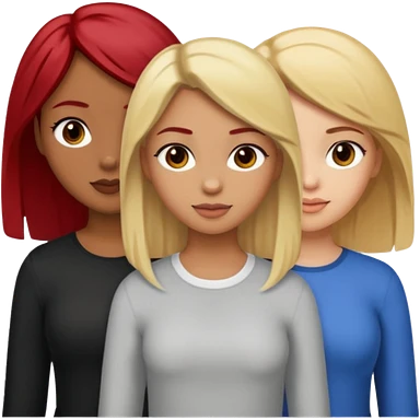 3 girls. 1 light skin with blonde hair 1 brown skin with black hair and 1 tan skin with brownish/red hair emoji