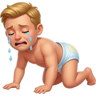 Adult blond hair male crying and crawling and wearing a diaper emoji
