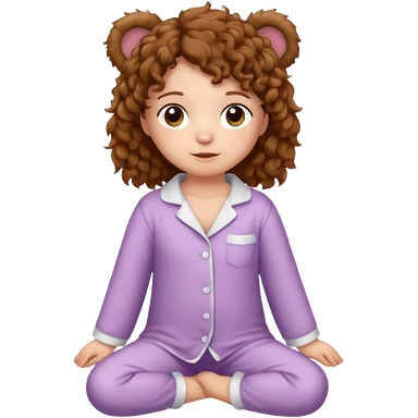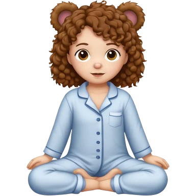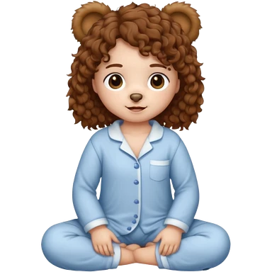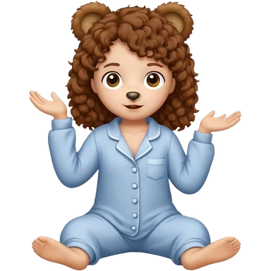 brown eyes, brown curly hair, white skin, full body in cute pijama bear emoji
