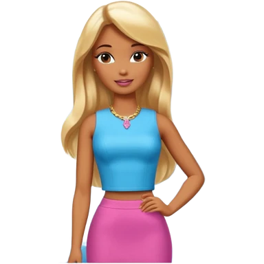 Brown skin blonde hair barbie in front of mountain and waterfall emoji