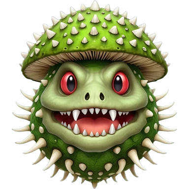 poisonous mushroom beast portrait, head and shoulders only, mushroom shell armor, spiky fungus growths, toxic green veins, beast-like mouth, heavy fungal texture, 3D cartoon, mobile game icon style, clean background, no text, no watermark emoji