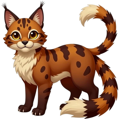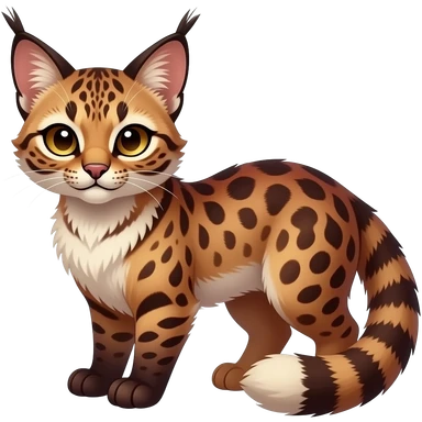 Dark gloomy red-golden-brownish-beige-gradients colorful painted marked patterned Asian glorious divine exotic cute cool beautiful shiny beautiful fantasy-caracal-civet-genet-sergal-vernid-Cacomistle-oncilla-animal-Eevee-Fakémon-hybrid-fursona (full body) emoji