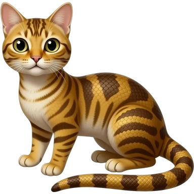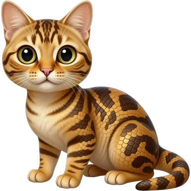 Brownish-golden-sandy scaly cute realistic hyper-realistic big-eyed beady-eyed python-cat-hybrid-animal emoji