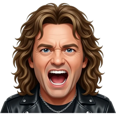 bruce dickinson, metal musician, screaming with mirophone emoji