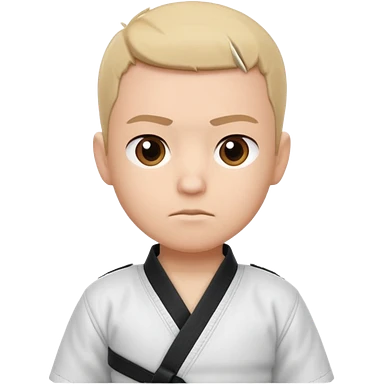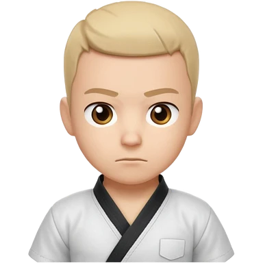 cute martial arts coach portrait, head and shoulders only, gi uniform collar, black belt detail, serious but friendly face, 3D cartoon, mobile game icon style, clean background, no text, no watermark emoji