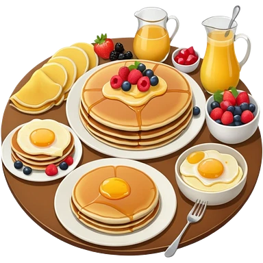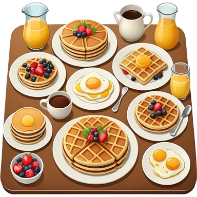 Brunch spread with waffles, eggs, and fruit on a table emoji