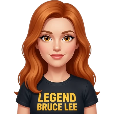 sexy girl with long ginger hair and ginger eyes a top with LEGEND BRUCE LEE written on it emoji
