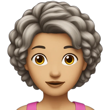 femme brune un peu bronzée avec des cheveux court et bouclée et des lunettes emoji
