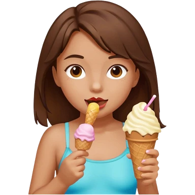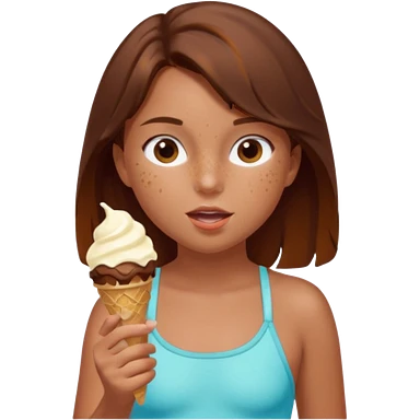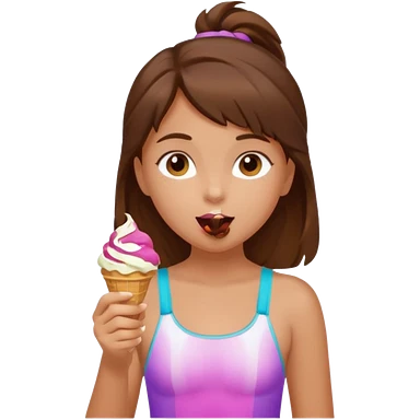 girl kid brunet haired swimsuit, eating ice cream, sun emoji