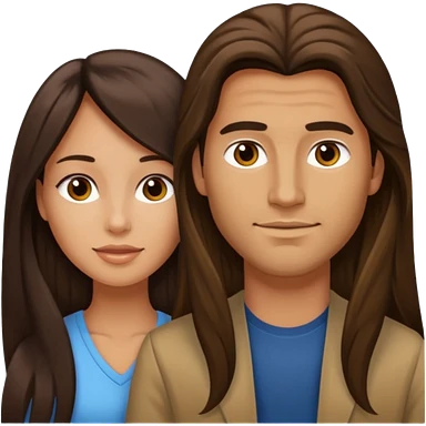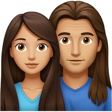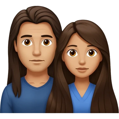 brunette with very long hair in black cuir jacket with red lips and very dark brown eyes emoji