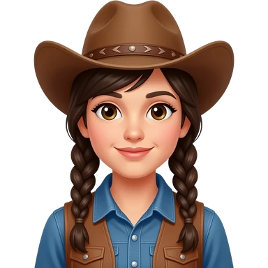 Brunette cowgirl with 2 braid face and body emoji