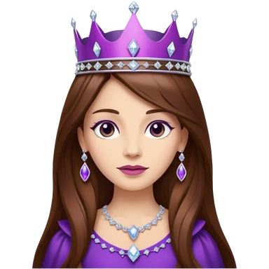 brunette and brown eyed queen with silver and purple crown emoji | AI Emoji Generator