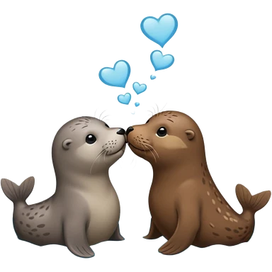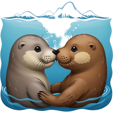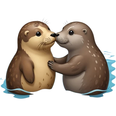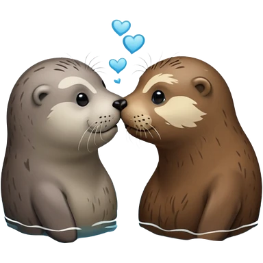 Grey seal and brown otter kissing each other emoji