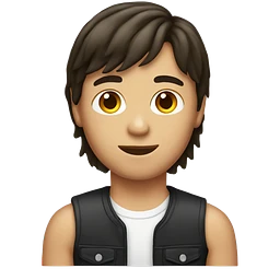 A young man with brown hair and a mullet haircut and a moustache emoji