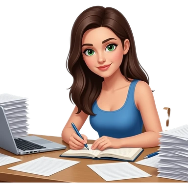 brunette caucasian woman with long hair writing a book emoji | AI Emoji Generator