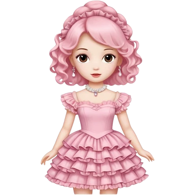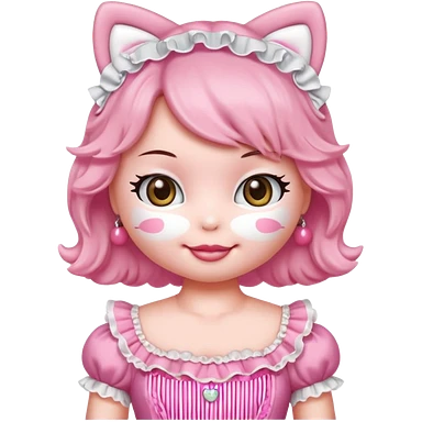 white brunette with brown eyes and a pink coquette outfit, drinking a caramel machiatto emoji