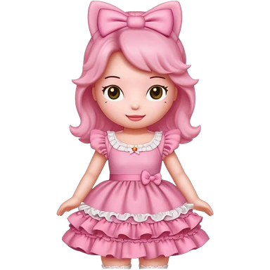 girl with brunette hair in a braid on her shoulder with a pink coquette bow on the end and she has mascara on her eyelashes emoji