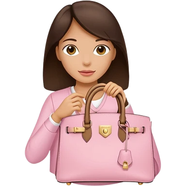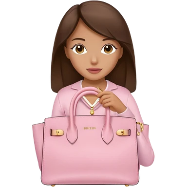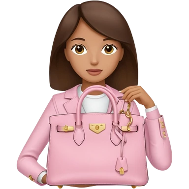 A brunette tan women holding a baby pink Birkin bag with gold hardware emoji