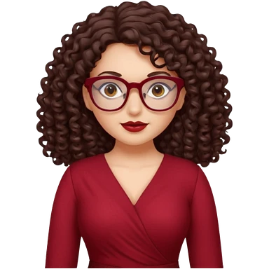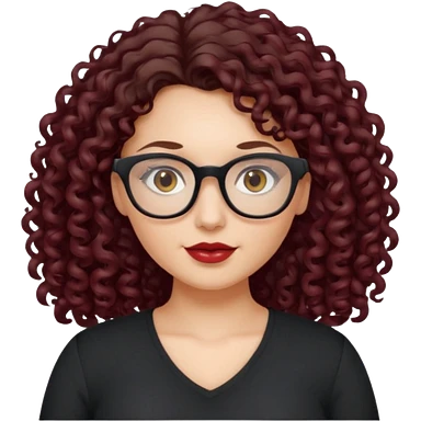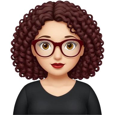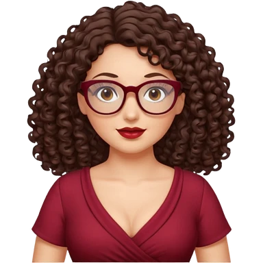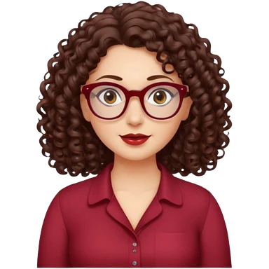 brunette , curly long hair , gray eyes , dark red glasses , curvy emoji | AI Emoji Generator