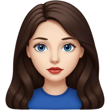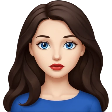 Woman with fair skin long brunette hair dark blue eyes and full lips emoji