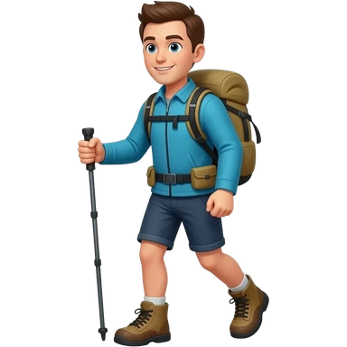 A man wearing hiking clothes and carrying trekking poles. emoji