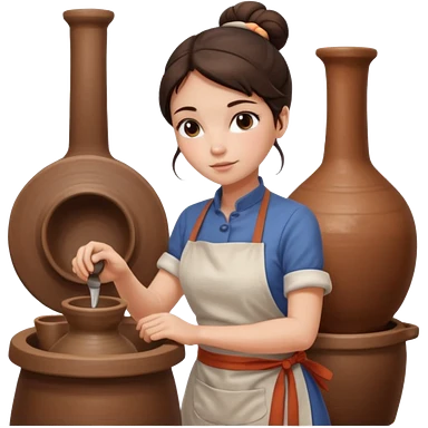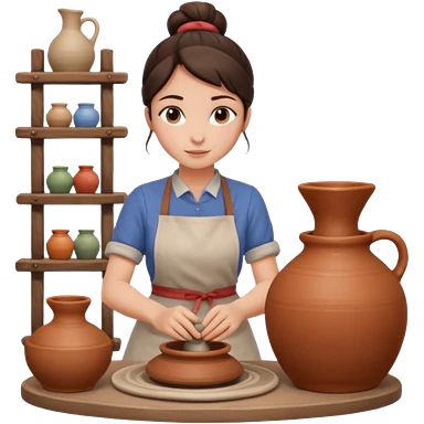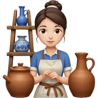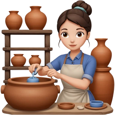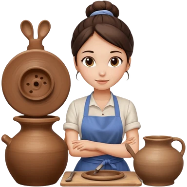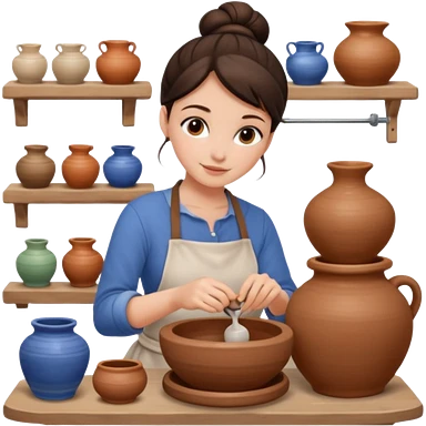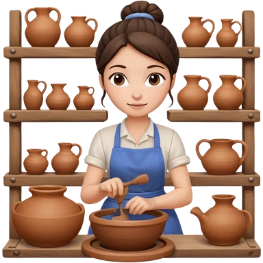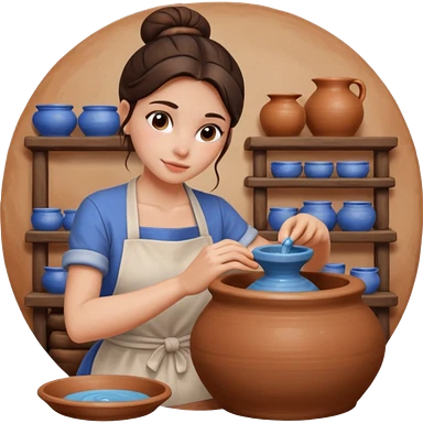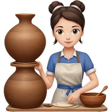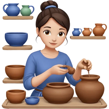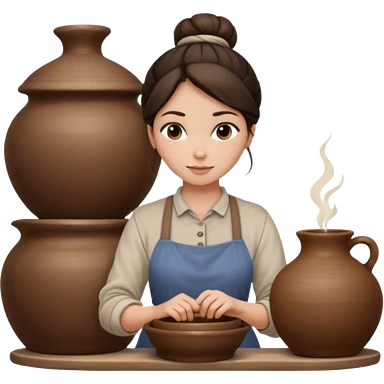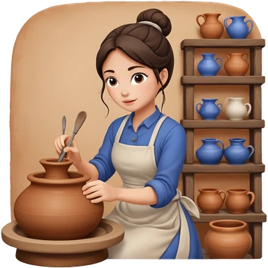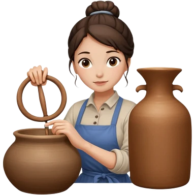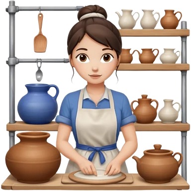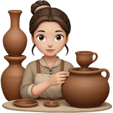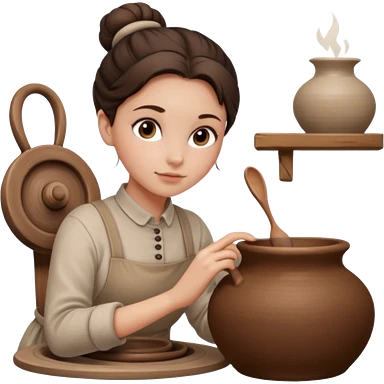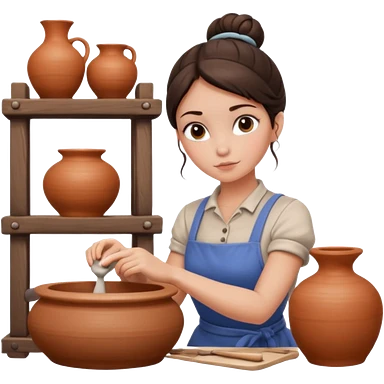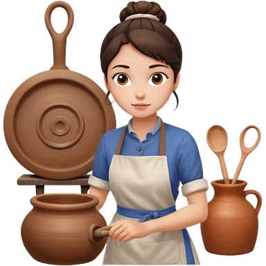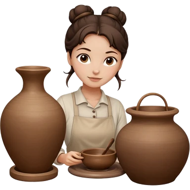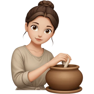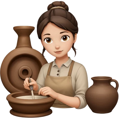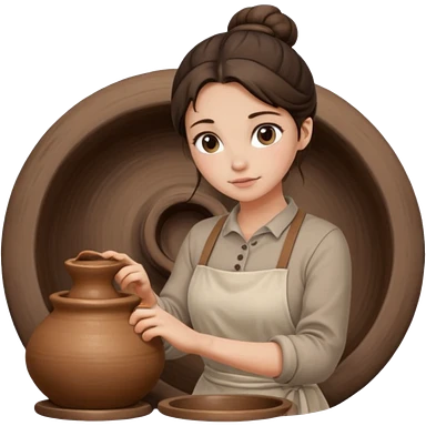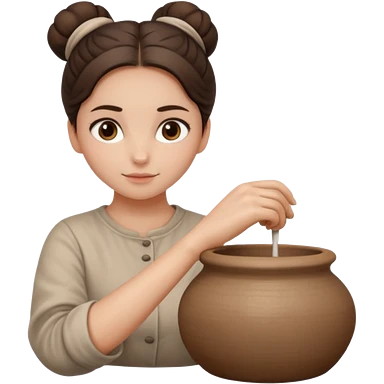 Brunette girl, bun, doing pottery, pottery wheel emoji