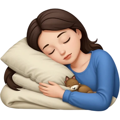 brunette girl sleeping with a small cat emoji