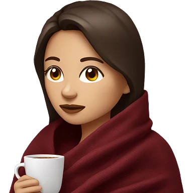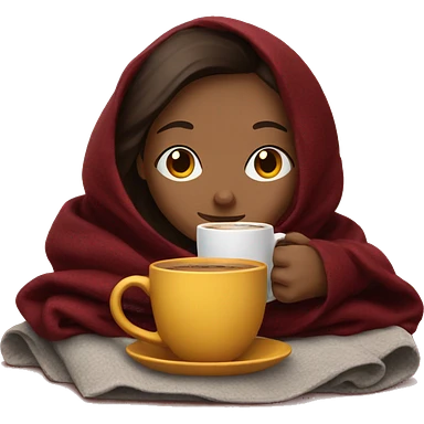 Brunette girl wrapped in red blanket with hoodie sipping tea emoji