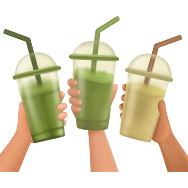 3 womens hands holding matcha drinks emoji