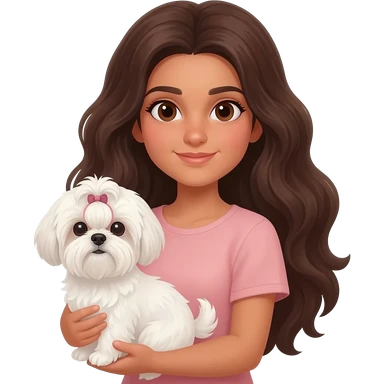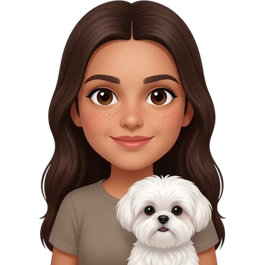 Tanned middle eastern Brunette girl with long thick hair holding white shih tzu emoji